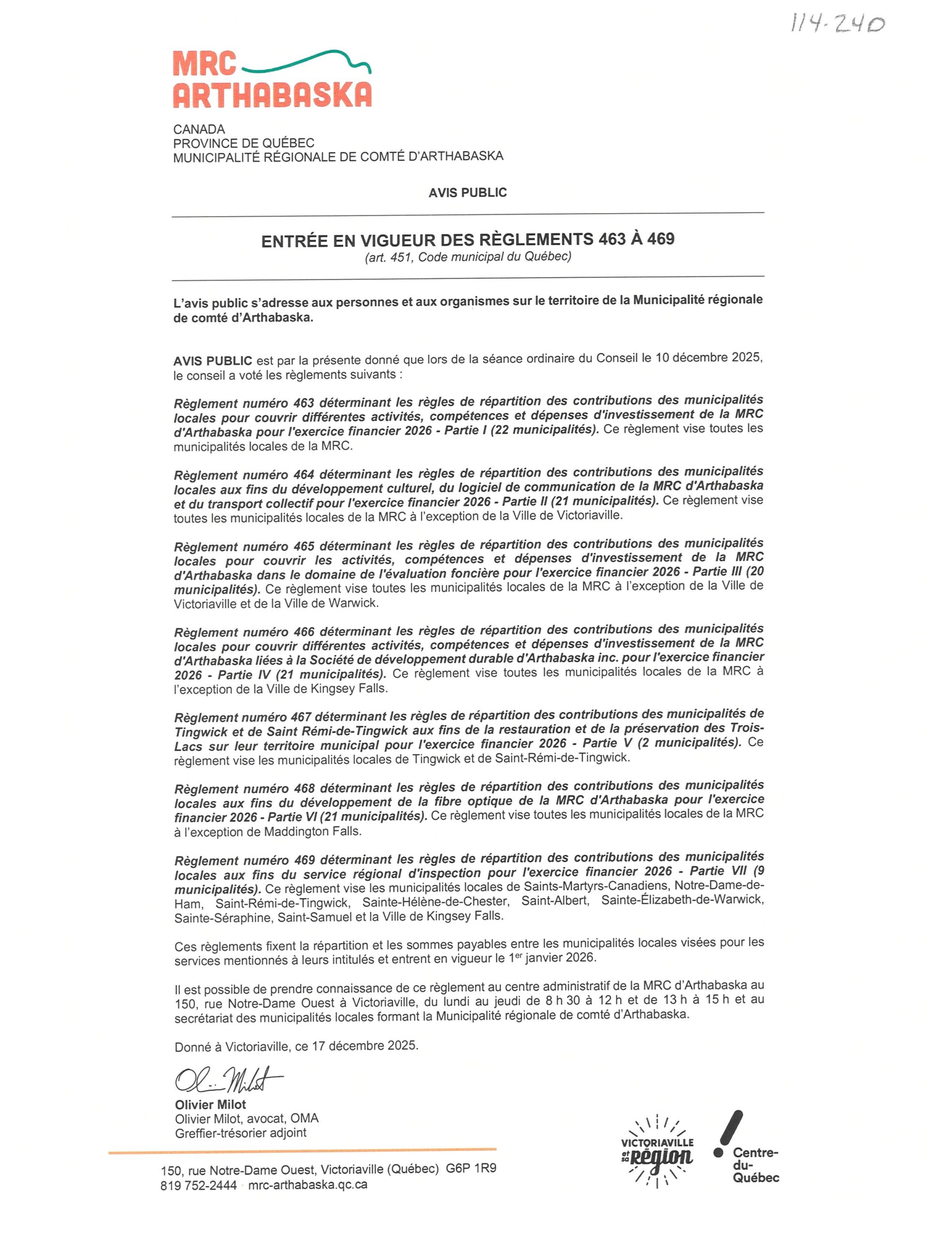 20240219 – Avis public, MRC d’Arthabaska – Consultation publique